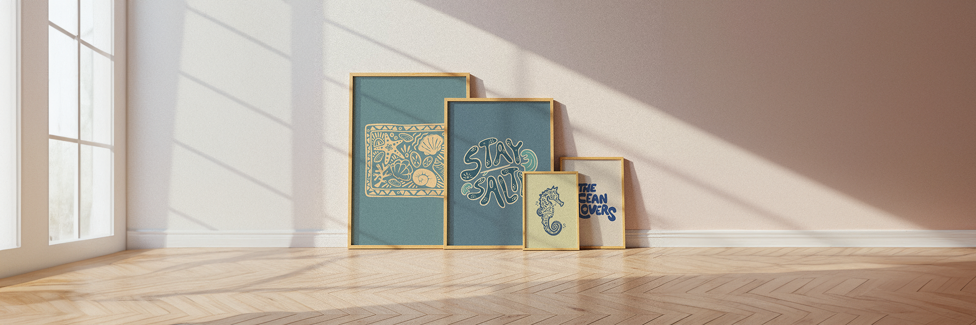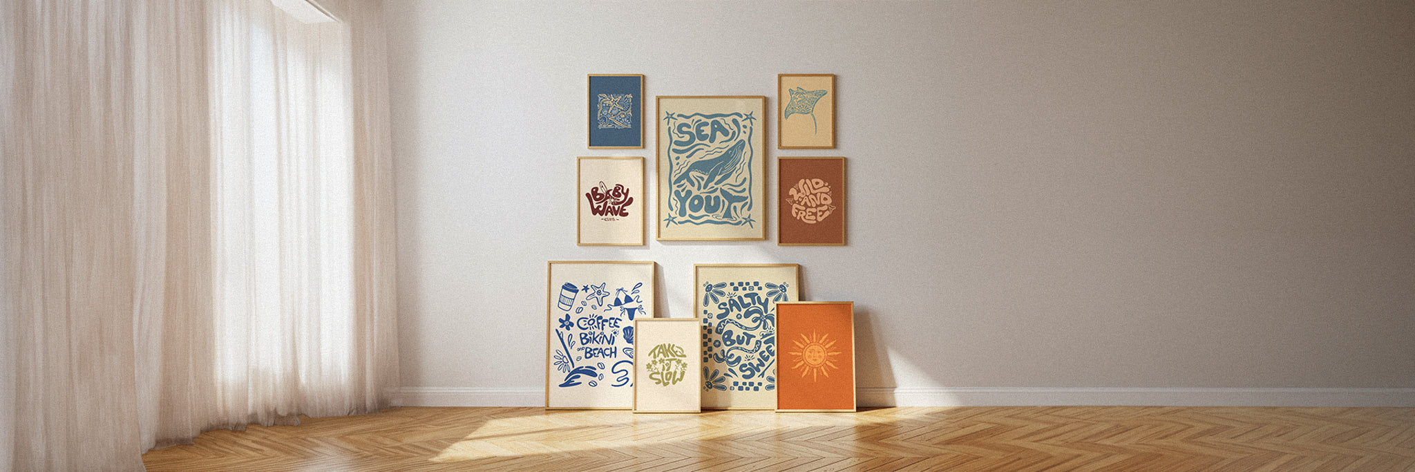 Stilvoll handillustrierte Designs, veredelt zu hochwertigen Kunstdrucken
